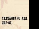 大家好,我是小前,我来为大家解答以上问题。永恒之塔还需要点卡吗,永恒之塔要点卡吗很多人还不知道,现在让我们一起来看看吧!1、是时间 浏览全文>>